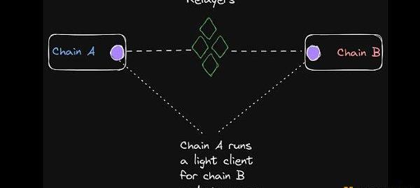 随后,这两条链需要在对方链上运行一个轻客户端,用以加密验证两条链间的共识状态,还需要一个中继器用于在两条链上轻客户端间传递信息。中继器要求活跃,可以在节点间交换消息,让节点成功融入共识。让我们来看看实际操作中是怎样的: