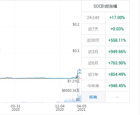 市值更小的SOC,情况更为明显。4月3日,SOC币一天时间就上涨了17%,而在最近3个月的时间内,SOC的价格上涨幅度接近6倍。