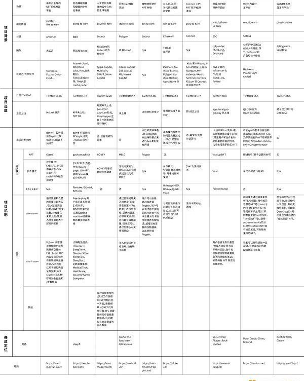 我们从不同的x模式下,挑选了较具代表性的10个项目从项目背景、进度、机制及赛道定位四个维度进行了对比。由此,我们希望能从宏观的角度审视xtoearn生态,思考?x场景的切入角度和意义,理解earn模式的必要性、创新性,以及不同项目和StepN在经济模式上的差异化。