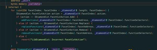 接下来回头分析下TheSaudis这次事件中的一些细节,在该项目的DiamondCutFacet.sol合约中,可以看到实现了diamondCut功能的函数。