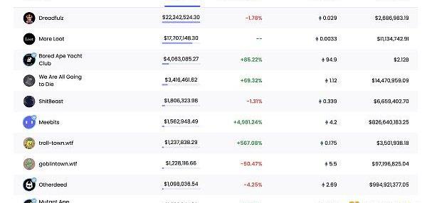 24小时内销售涨幅前十的NFT数据来源:NFTGO