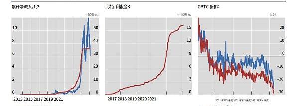 展望未来,加密资产或相关衍生品的ETF可能会占据越来越多的市场份额。2021年流入投资加密资产的封闭式基金的资金量减少,而基金资产净值从溢价转为大幅折扣。这种转变与机构投资者将资金转向新推出的费率较低且二级市场更活跃的ETF有关。
