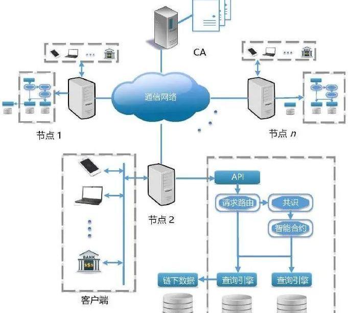 1、应用层。应用层有三个模块:API、权限控制和智能合约,API对外提供以SQL-like语言访问区块链的方式;权限控制对请求权限进行验证,