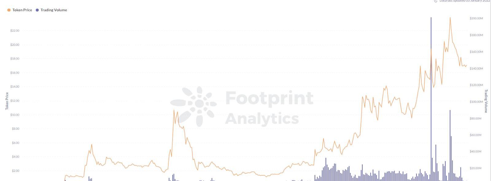 2021怎么可以不谈NFT和GameFi。但是由于大部分NFT项目没有发行Token,因此在Token板块我们重点看一下GameFi的数据。