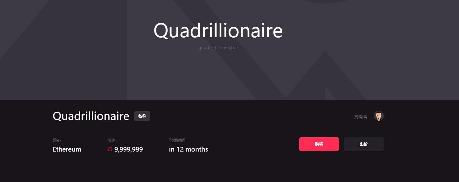 Decentraland称号NamneQuadrillionaire的在售界面