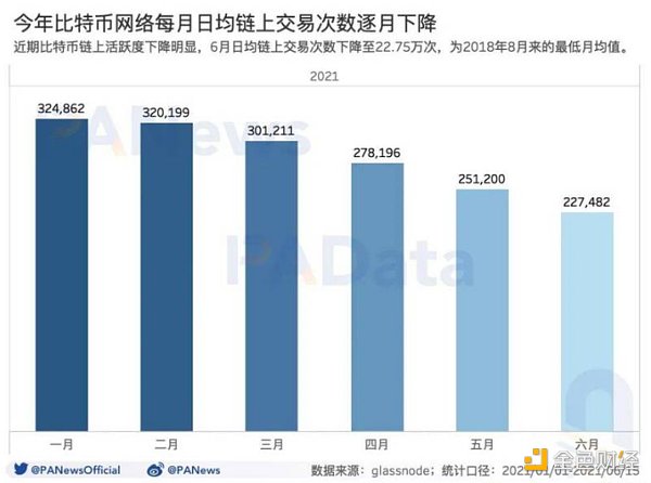 另一方面,比特币网络的出块量也在下降。截至6月15日,本月日均出块量仅为135.20块,环比下跌约5.24%。从历史出块量来看,本月日均出块量创下了2018年11月以来的最低值。