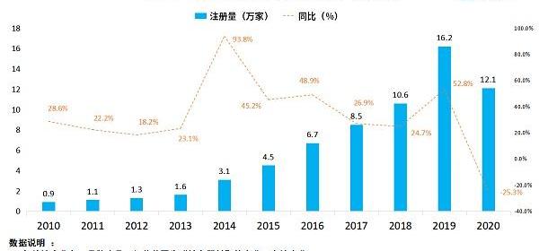 近三年注册量均超10万,2020年数据同比下降25.3%