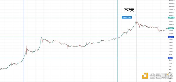 2017年牛市行情,BTC突破13年牛市顶点,后面用时292天的时间才到达本轮牛市的终极大顶2万美金,同样在这段时间内,大幅洗盘家常便饭,不过正是这些强势洗盘让筹码不断换手,才有了后面的疯涨行情。