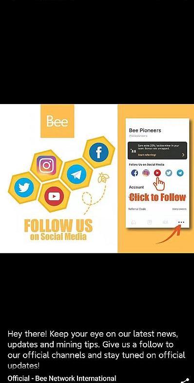 1、和pi币一样的,注册送一个Bee币,每天24小时点一次闪电即可