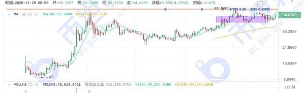 虽然DOT仍在区间震荡,但今日大涨已经逼近上方高点,观察价格是否能成功破前高,则前高处就是入场机会。