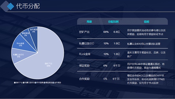 除了如何通过Rlink获得邀请推广获得奖励外,用户关注的还有为Rlink的治理代币RLT赋能的场景,预判RLT价值的潜在增长空间。通过官方消息可以看到,第一是DApp的质押,度过免费期后,按照规划,调用Rlink地址池合约时需要质押一定数量的代币获得权限;第二是节点质押,持币者可以将RLT质押到节点获得挖矿奖励,后期为验证节点奖励;第三是社区激励,用于激励推动社区建设以及推广行为;第四是投票治理,官方管理团队会将管理权交给社区投票,RLT同样可以做治理代币。