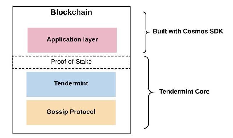 谈到Cosmos如何具体完成跨链动作,我们依然要回到其结构构成来看,Cosmos将区块链拆分出了共识层、网络层和应用层,这能让开发者在开发各种类型应用的时候有更大的灵活性。
