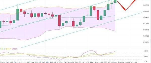 操作建议:现价14280-14300空单进场,目标14150-14000,防守位14450.