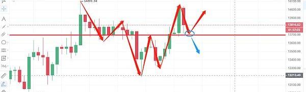 策略一:企稳13800多单入场,目标13900-14000,上破14000看14200,止损100