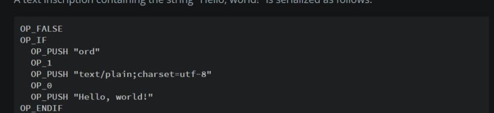 这些唯一的聪可以被「铭刻」任意内容,例如文本、图像、视频等,从而创建出「铭文」。铭文是比特币NFT中metadata的概念,在链上存储在taproot脚本中。