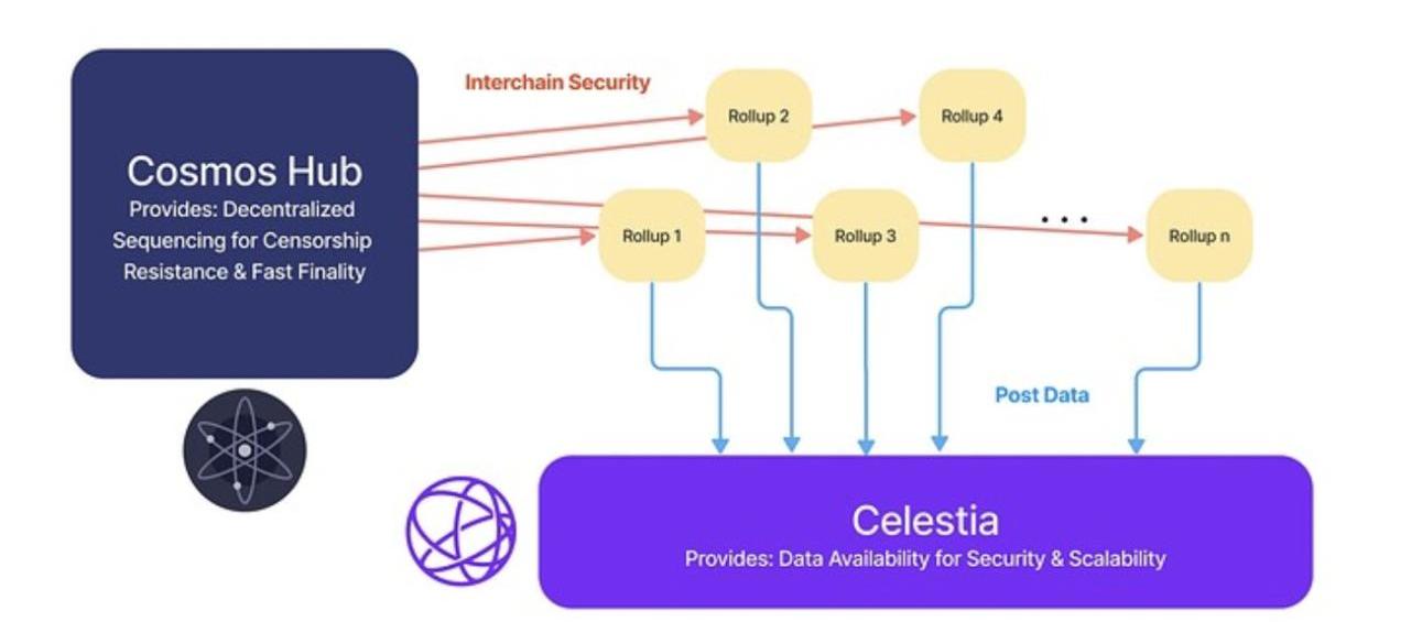 模块化区块链的代表项目之一Celestia的首席运营官NickWhite最近在Celestia论坛上分享了一个关于Rollup排序器去中心化的有趣提案。他建议使用来自Cosmos生态系统的InterchainSecurity。InterchainSecurity(ICS)使用CosmosHub的验证器为消费者链提供共享安全性。换句话说,这个想法是通过ICS利用Cosmos的现有验证器作为Rollup排序器,因为Rollups推出新代币和为PoS构建去中心化排序器集具有挑战性。这与利用EigenLayer进行去中心化排序的思路基本相同。