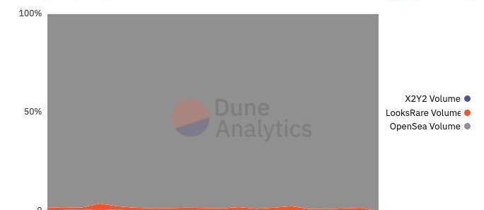OpenSea、LookRare与x2y2的市场占比|来源:DuneAnalytics