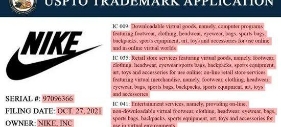 图|耐克提交与“元宇宙”平台相关的商标申请