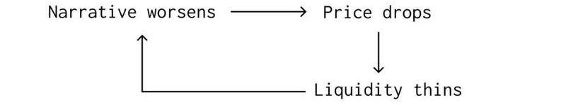 缺乏流动性忠诚意味着一有危险迹象就会逃离风险。规避风险标志着代币价格的下降。代币价格的下降标志着流动性的退出,而流动性的退出标志着代币价格的下降。