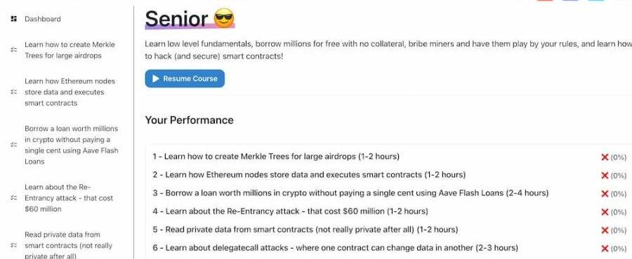 AlchemyUniversity是区块链开发平台Alchemy与其收购的教育初创公司ChainShot合作推出的Web3学习平台AlchemyUniversity,训练营内容包括密码学、Solidity开发、智能合约安全、代理合约、委托调用等,既是一门Web3开发课程,也可作为一个用于构建技能和网络的完整生态系统。链接:https://university.alchemy.com/BlockchainatBerkeley