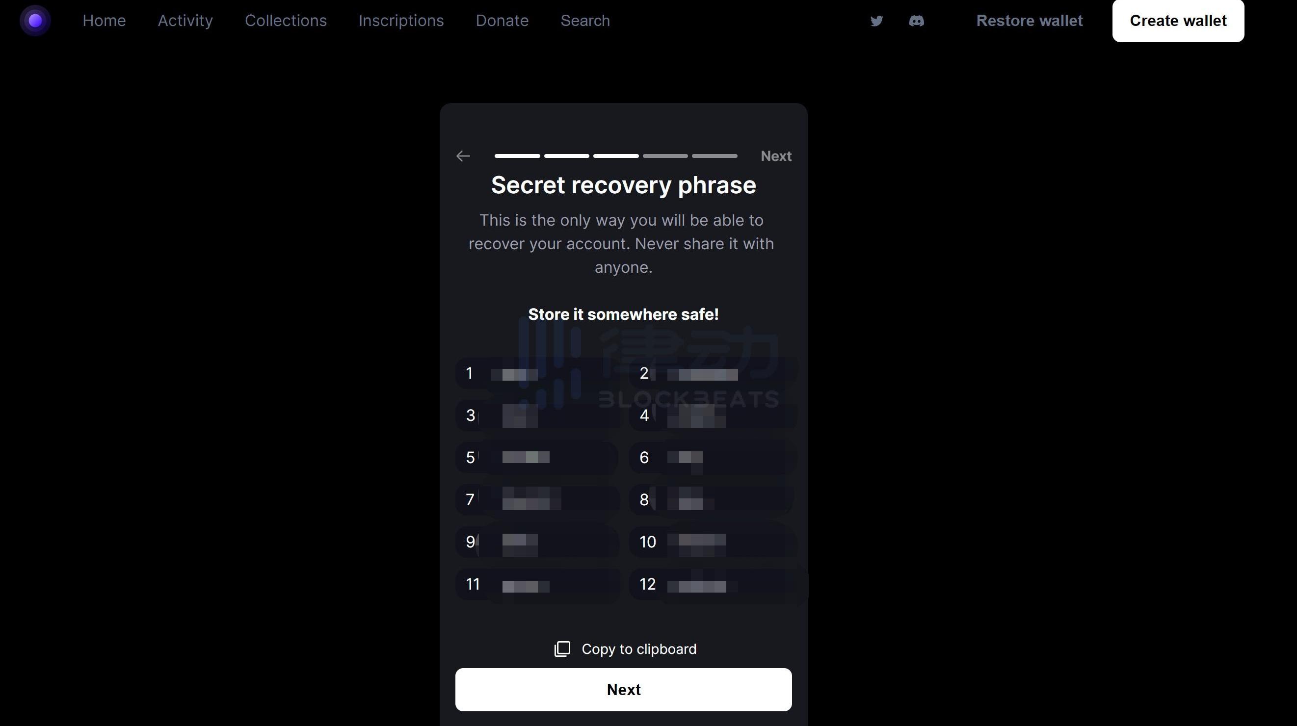 到这里就正式完成了新钱包的创建。之后,只要不清理Cookie和浏览器缓存,登录状态会一直保持。如果清理了,则需要输入助记词来恢复钱包。点击「Enter」,我们会跳转到自己的钱包管理页: