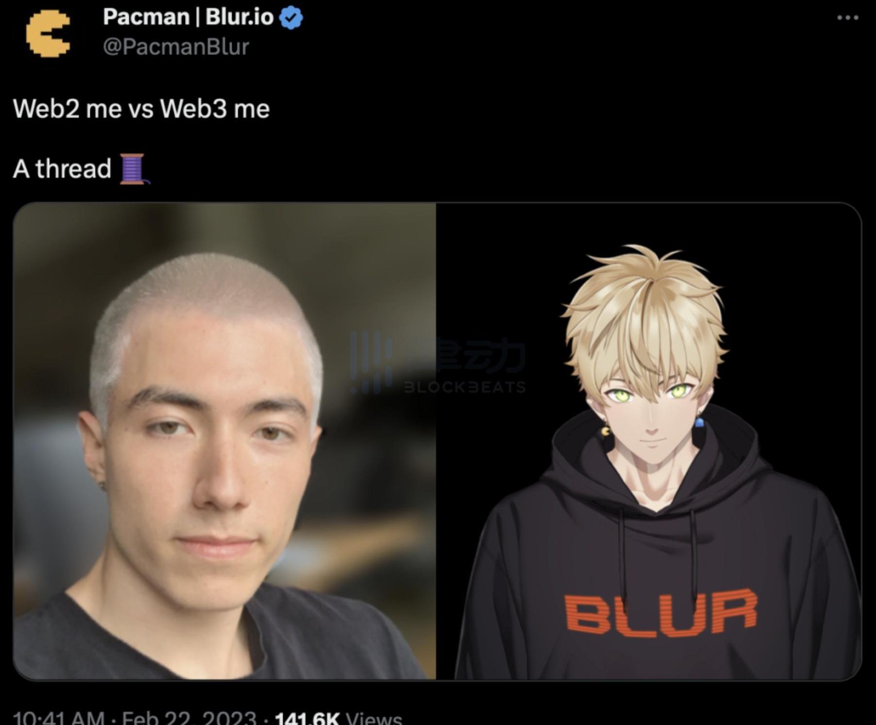 主持人:David,Bankless嘉宾:Blur创始人Paceman编译:Kxp,BlockBeats自去年年底,Blur三季空投一直是加密市场追逐的焦点。最近,Blur发展态势呈指数增长,甚至牵连起了经历短暂沉寂的NFT市场。Blur多个数据表现亮眼,其中,Blur过去一周市场交易量接近3.9亿美元,是OpenSea同期交易量的四倍之多。市场热议:长期霸占NFT市场赛道龙头地位的OpenSea是否真的不可撼动?OpenSea首次采取了被动防御措施:2月18日,OpenSea宣布交易限时降至0手续费,并启用可选版税服务。OpenSea坦言:「自去年10月,有效交易量和用户转向不完全执行创作者收入的NFT市场。尽管我们尽了最大努力,但这种转变仍在急剧加速。」罕见地,OpenSea短暂地被迫交付出主导NFT市场节奏的能力,换成了野蛮生长的Blur。今日早些时候,Blur创始人Pacman在社交媒体公布个人照片和履历,于是Blur以一种令人意外地方式再度引爆网络。