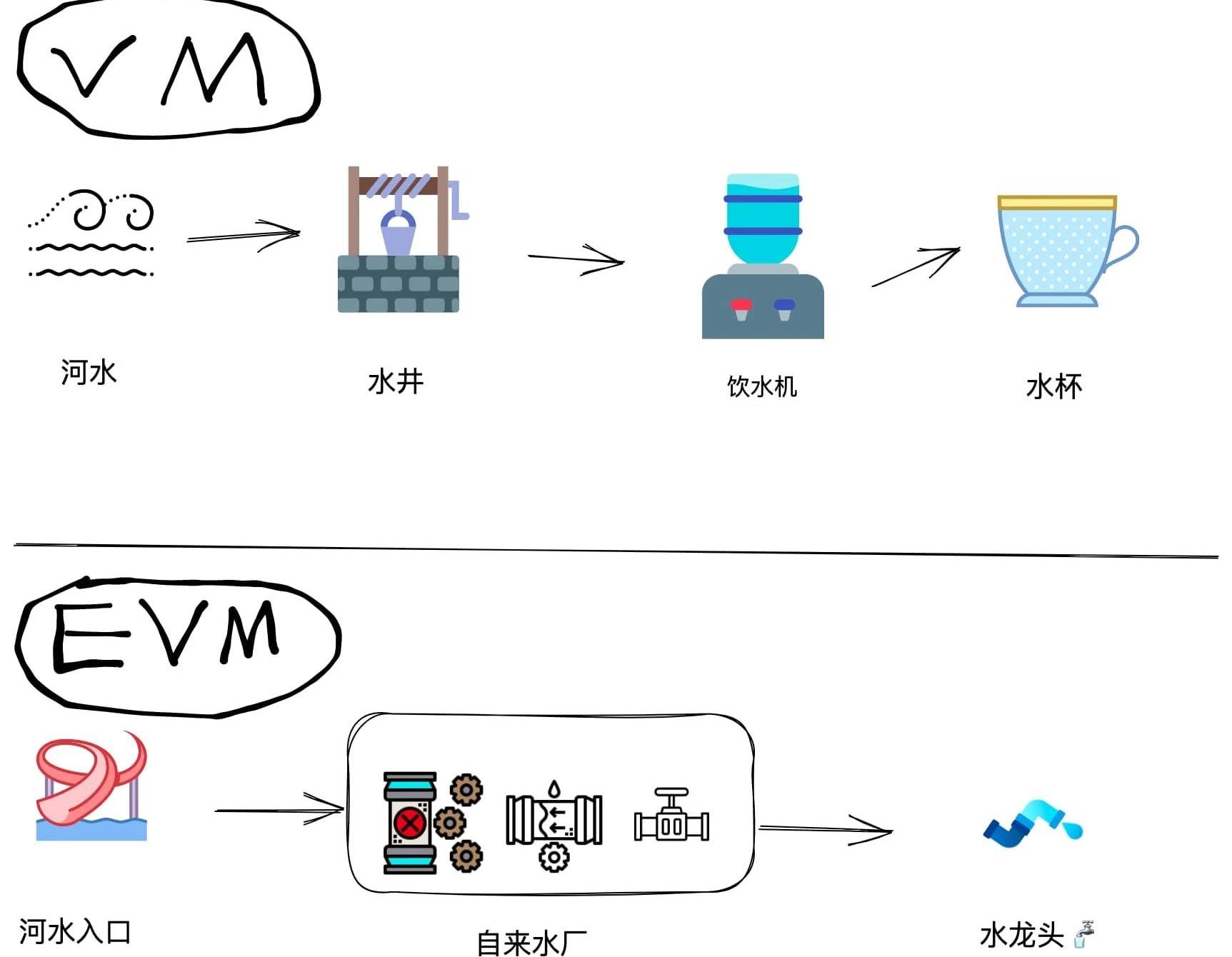 图片说明:EVM的工作示意图源:R3PO并且语言级的兼容性也有助于确保EVM的效率和安全。上图中的虚拟机是指不同操作系统间的运作模式,比如ParallelsDesktop,可以保证在Mac上运行Windows子系统,但是需要先从原始系统内分配特定的软硬件资源建立子系统,然后在子系统中安装Windows应用,随后该应用才能运行,但是受限于分配资源的局限性,其运行效率和原生应用无法相提并论。而EVM类似JVM,是从Solidity语言级去进行兼容性操作,开发者利用Infura提供的API和主网交互,利用Truffle进行智能合约开发,测试和部署等等,开发套件一应俱全,完成对EVM的适配后Dapp便可在任意兼容EVM的公链上运行。不仅对于开发者,EVM级别的兼容开发保证带给任意用户的体验也是完全一致的,为以太坊生态保存了最起码的种子用户群体,仅凭开发者和少量用户便维持了以太坊生态对其他公链的领先优势。EVM参考的是JVM,不需要考虑过多硬件和编码问题,只需要面向应用真正需要的功能去开发,一次适配,多端通用。生态的含义就是开发+应用+用户,EVM在生态建设上起到了飞轮的初始化作用。欲论人者,必先自论:兼容EVM不会促进竞争者的胜出