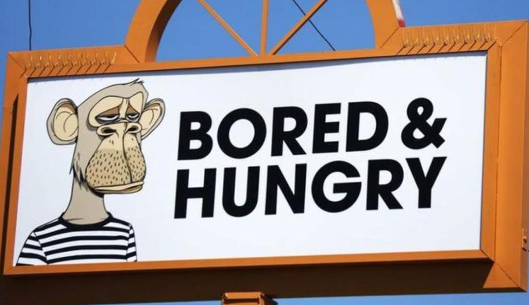 下面也分享一些具体的案例。餐馆老板AndyNguyen花了近38.7万美元购买了一只无聊猿和两只突变猿,用来装饰该店的汉堡盒、油炸架和饮料杯,开了世界第一家「无聊猿」主题餐厅Bored&Hungry。原本打算只是做几个月的快闪店,因为经营火爆,已经变成了一个长期营业的店铺。