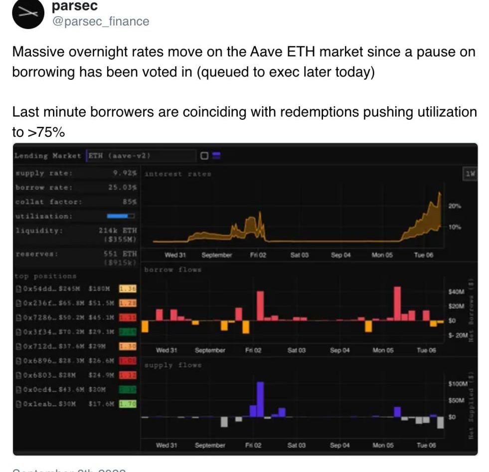 由于借贷的暂停已被投票通过,AaveETH市场上的大规模隔夜利率变动。选择你的交易所