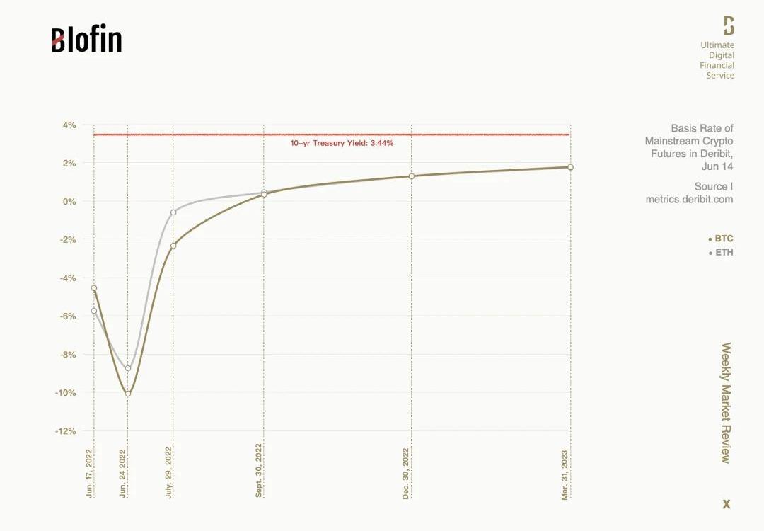 本周四的6月FOMC会议中,加息幅度或将超预期,市场正在竞相消化美联储更为激进的紧缩政策。考虑到加息与即将到来的衍生品半年度交割所带来的风险敞口,加密市场仍将面临着显著抛压,在短期内,避险策略仍将是投资者的最佳选择。