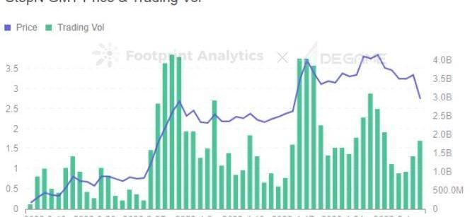 FootprintAnalytics&DeGame-STEPNGMTPrice&TradingVol2022年伊始,GameFi赛道蓬勃发展发展。众多数据表明,2022年极有可能是GameFi极速发展的一年。GameFi时代正在来临,数据是其最好的佐证。相信这份报告对于GameFi投资者、项目运营者甚至投资机构都是一个很好的信息来源,以真实、科学的链上数据为依托,分析行业的表现和发展情况,给予读者最客观的判断依据。关于FootprintAnalytics:FootprintAnalytics是一个一站式可视化区块链数据分析平台。Footprint协助解决了链上数据清理整合的问题,让用户免费享受0门槛的区块链数据分析体验。提供千余种制表模板和拖拽式的作图体验,任何人都可以在10秒内建立自己的个性化数据图表,轻松洞察链上数据,了解数据背后的故事。FootprintAnalytics官网:https://www.footprint.networkDiscord社群:https://discord.gg/3HYaR6USM7Twitter:https://twitter.com/Footprint_DeFi关于DeGame:DeGame.com是新加坡区块链公司L2YResearch旗下Web3.0NFT游戏基础设施平台。DeGame.com提供游戏发现、查询、攻略、下载、数据跟踪及专业分析等功能,致力于成为Web3.0世界中最好用的一站式链游数据及信息聚合平台,帮助玩家及投资者更好地发现优质游戏及Play-to-Earn机会。DeGame官网:https://degame.com/en/homeDiscord社群:https://discord.com/invite/9snHhFzAx2Twitter:https://twitter.com/degame_l2y