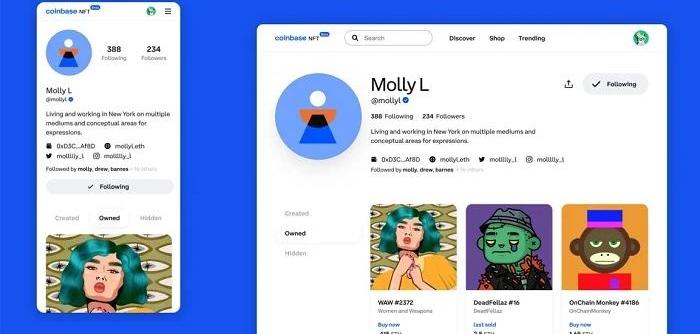 从最初犹抱琵琶半遮面,到现在千呼万唤始出来。终于,美国最大的数字加密货币交易所Coinbase宣布推出NFT交易平台。当然,为了顺应加密市场发展,许多加密货币交易平台此前已经开始自主打造数字藏品业务,但CoinbaseNFT市场与其他竞争对手有很大不同——他们显然不满足于仅仅做一个商品交易中心,尤其从其用户界面来看,CoinbaseNFT市场似乎更像是一个社交媒体应用。问题是,如果Coinbase真的打算雄心勃勃地打造一个基于NFT的社交网络,就意味着他们必须要面对、并解决社交媒体所面临的各种难题。早在2021年10月,Coinbase就公布了NFT平台的计划,还发布了一份准备加入该平台的等候名单。通过CoinbaseNFT平台,人们可以在以太坊区块链上进行交易、铸币、展示和浏览NFT。在一篇官方微博中,Coinbase这样写道:“其实在很多时候,人们会发现当自己想要创建或是购买一个NFT时,却发现自己在这方面毫无经验,导致无从下手,而我们正在做的事情就是打造一个充满活力和安全的NFT市场,推动更多人参与。”NFT与社交媒体之间千丝万缕的关系由来已久,比如目前应用较多的场景就是买家在线上展示的NFT像素风格头像(PFPs)。此外,加密社区成员还经常活跃在Discord和Telegram等一些论坛上,并会在Twitter上发表一些推文。假如这次CoinbaseNFT能够获得成功的话,那么他们很可能会成为Web3领域的Instagram。下面展示了一个CoinbaseNFT市场的截图,坦率地说,CoinbaseNFT平台给人留下的第一印象与Instagram非常相似:每个用户的个人资料都会呈现在一个简洁的白色背景上,页面顶部会显示昵称、用户名、头像和关注量,用户信息下则是一组从用户数字钱包导入的NFT图像,其中有一个“Discover”选项,该功能类似于新闻推送,人们可以通过滚动条浏览源源不断的NFT图片。