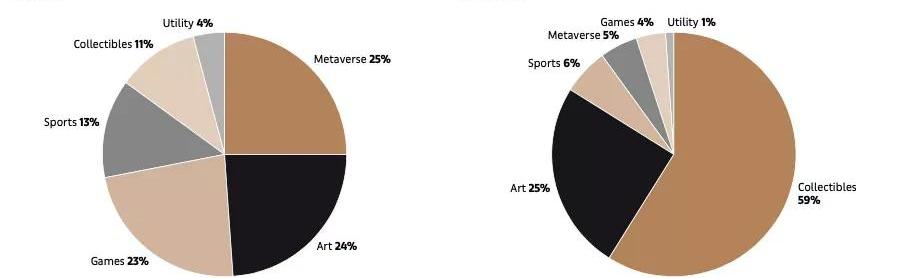 NFT艺术逐步成为数字艺术的一个重要分支,增强了传统数字艺术的可信、可溯源等特性。NFT保护数字艺术品的版权,拓展数字艺术品的金融属性,同时使得艺术创作的手段和内容更加多元化。此外,NFT使得艺术创作者的角色得以拓展和外延,极大限度地保障了艺术创作者的权利。NFT使得艺术市场的结构发生,从艺术品种类成交的百分比上,数字艺术占比不断扩大,从一二级市场的角度来看,数字艺术在二级市场相对于以及更加活跃;NFT也使得藏家的角色在不断扩大,拓宽了艺术品的销售渠道。4.2NFT艺术的挑战