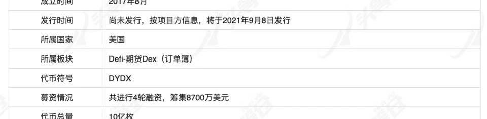 项目简介dYdX是订单簿期货DEX,也是目前的期货DEX赛道龙头,在出了以太坊主网上的三个杠杆交易产品之后,今年2月上线了二层网络上的永续合约产品,8月初,产品正式上线。基本信息