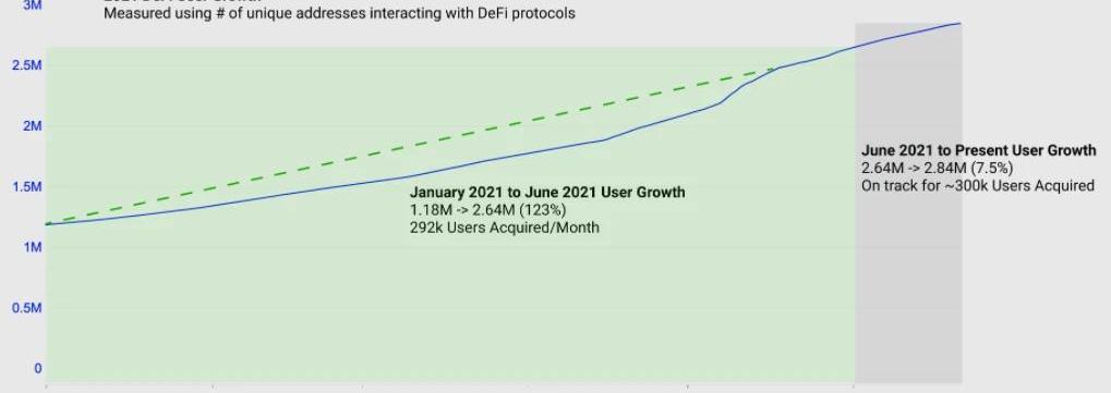 最后,DeFi用户增长的情况,虽然整体数据仍在攀升,但最近月环比涨幅开始下降,4月份涨幅18%,5月份涨幅25%,而6月份涨幅降至12%。近期,DeFi平台频频暴雷,新用户进入DeFi生态系统能否拥有积极的体验非常重要,这样才能维持其继续参与DeFi协议的动力。暴雷事件频发也引发了在DeFi中引入监管和问责制的讨论。未来,开发建立在“零知识证明”之上的合规性系统以实现DeFi的扩展至关重要,兼顾隐私性和合规性将成为DeFi的另一个演化方向。