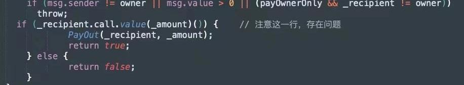 下面的代码则是进行提款奖励操作,每次攻击者调用这项功能时p.splitData都是一样的,并且p.splitData.totalSupply与balances的值由于函数顺序问题,发生在了转账操作之后,并没有被更新。
