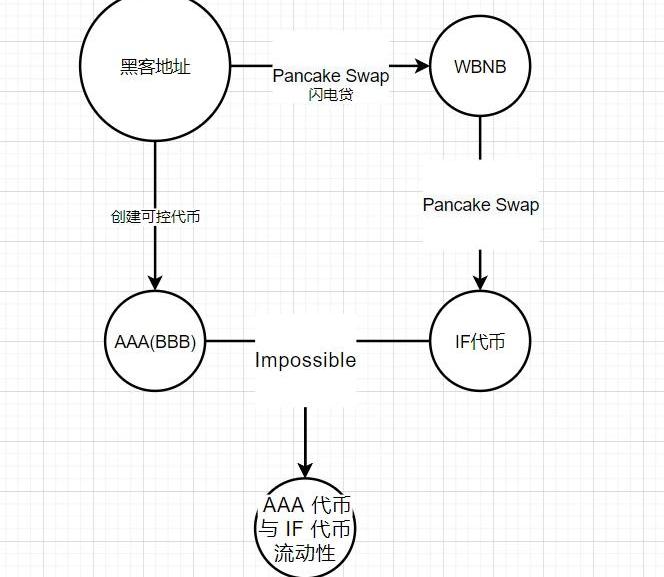 图1:黑客准备阶段流程图从黑客准备阶段流程图中我们可以看到黑客的最终目的是创建AAA代币与IF代币流动性。为此他的具体操作:第一步:获取IF代币(利用闪电贷从PancakeSwap中获取WBNB代币,并将其兑换成IF代币)