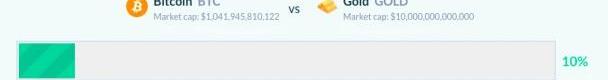 来源:AssetDash即使放到全球资产中,比特币的表演也堪称惊艳。据AssetDash统计,截至发稿,比特币市值约为1.04万亿美元,升至全球市值资产第6位,超越腾讯、特斯拉、Facebook、阿里巴巴等众多互联网科技巨头。与此同时,比特币市值已达黄金的10%,白银的69%。