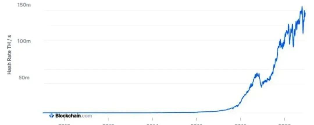 2020年12月10日矿工前四天的区块奖励分配情况。来源:blockchain.com上面的饼状图清楚地表明了,比特币矿工的活动主要分布在个人和大池子之间。大家都在竞争获取奖励的权利,而这也是为什么没有一个“领跑者”的原因。矿工在比特币网络上所使用的算力总量称为哈希率。由于竞争带来的对抗,且大家使用的设备基本相同,所以该领域基本是公平的。