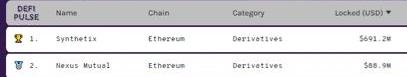 NexusMutual堪称DeFi保险的鼻祖,去年就已经启动,代币是NXM,在DeFiPulse衍生品总锁仓市值排行榜中位列第二。