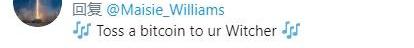 对此,不少加密圈大佬和爱好者纷纷发来热评,其中特斯拉CEO埃隆·马斯克评论回复表示,“扔给我们的女巫一枚比特币”,获得了最高的5万点赞数。