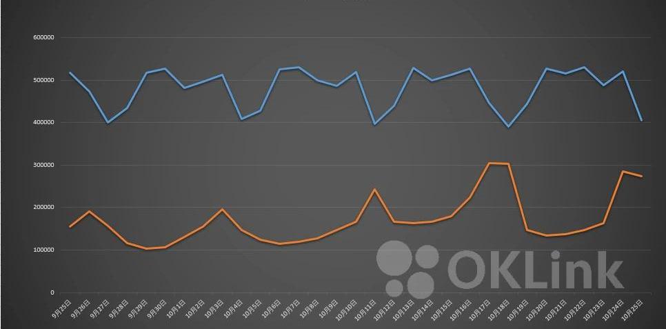 10月19日至10月25日,比特币和以太坊链上数据周报。活跃地址数