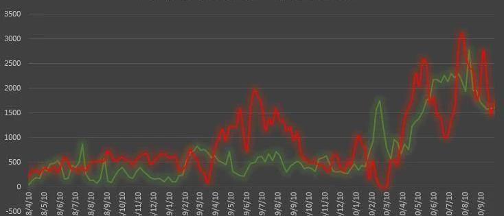分项数据上来看,规模较大的经纪商持仓多头头寸自525张进一步反弹至703张,经历了近两周的增持过后9月中旬的大幅减仓幅度基本得到全数回补,空头头寸自28张同步反弹至64张。大型机构在9月中旬一波极端减仓过后近两周一直在进行仓位回补,最新统计周期的调仓结束后目前多头头寸已经回到了700以上的历史高点水平,与此同时空头头寸也回到了整整一个月的高点位置。虽然这类账户进行了多空双向同步增持,但是从具体调仓幅度上来看,大型机构长期的偏多态度已经重现。