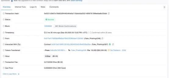 2020年9月25日,社交媒体传出,有用户被tomatos.finance盗取1万DAI。该局的主要方式是以空投诱导用户approve给权限,然后直接转走代币。空投是局,暂未收到代币。tomatos.fi是流动性挖矿项目,疑似是来自某中国团队。经与多家安全公司核实,截止发稿前,有多名用户被tomatos.finance盗取稳定币,遭遇巨额损失。吴说区块链采访了其中一个遭遇tomatos.finance黑客盗币的用户,对整个事件进行回顾:A用户于事发前几天登录tomatos.Finance授权使用imtoken钱包。在北京时间2020年9月26日23时左右,登录imtoken,存入DAI,黑客创建了tomatos.finance的合约,调用了DAI的合约,只要钱包有DAI存入,就被黑客转走,从DAI转入钱包到黑客转走大概持续10分钟时间。钱包后台是unlimited的设置。A用户损失将近1,350,000个DAI。.事发之后,用户发现tomatos.finance的网站打不开,Twitter账号已经不存在,但telegram还开着。先曝光黑客的地址为:0x917a417D938B9F9E6ae7F9e5253FB6DE410343e3