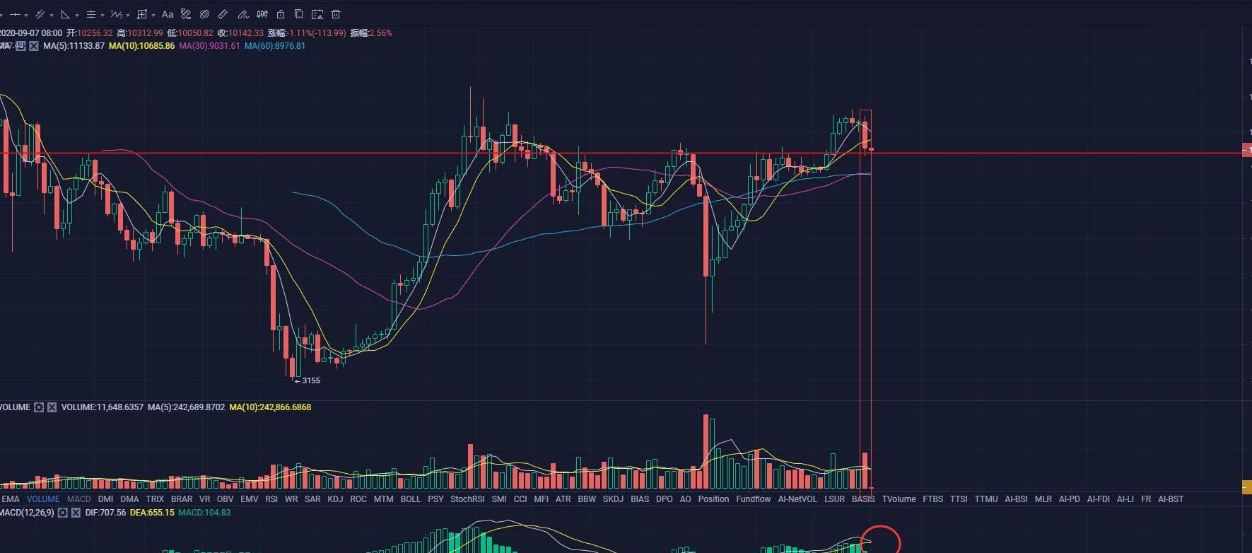 当下周线下方没有均线支撑,只有几个前期在10000美元附近所形成顶部搭建的平台,还是10000美元,而若是在10000美元下方的话,短期内看不到强力的支撑,即使是9800/9500几个位置也是比较空洞的,除非要到9200美元才能找到比较强力的支撑,毕竟是前期的起涨位置,所以10000美元不被彻底跌破还是挺重要的。日线级别从昨天开始就没有创新低,今天到目前为止还没创新低,这算是一个并不差的信号,不然即使一边反弹但一边创新低反而更不利于行情的下一步发展。