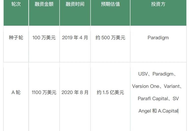 2019年4月,Uniswap完成种子轮融资,融资金额约100万美元,投资方为投资机构Paradigm,如果按照20%的稀释额度测算,预期估值约500万美元。2020年8月7日,Uniswap创始人HaydenAdams在官网发文宣布正式获得由a16z牵头的1100万美元A轮融资,其他投资者还包括USV、Paradigm、VersionOne、Variant、ParafiCapital、SVAngel和A.Capital。如果按照8%-15%的稀释额度测算,预期估值约1.5亿美元。表二:Uniswap历史融资情况