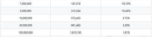 锁仓收益率并不完全确定,而是根据参与人数量最终确定,Vitalik给过一个锁仓收益率的测算,大概如下: