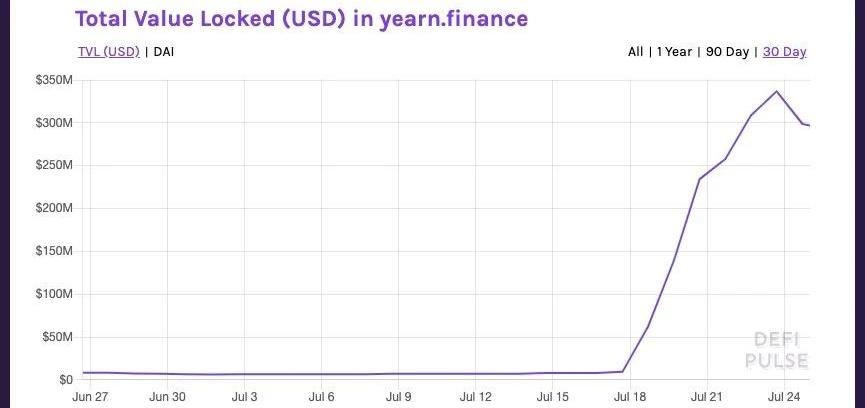 DeFi真正创新的另一领域就是流动性挖矿。我们最近的《dYdX交易员洞察》系列文章所述,流动性挖矿是DeFi协议冷启动流动性建立用户基础的创新之处。流动性挖矿与比特币挖矿有类似之处,由协议向提供工作量或DeFi中的流动性供应方提供奖励,推动网络供应面更有价值。就是这种激励创造初始网络效应。即便流动性挖矿是全新模式,按早期启动规模来看已算成功。Compound启动COMP流动性挖矿之后,存款增量巨大,交易深度幅达400%。同样,Balancer宣布BAL挖矿后,活跃用户暴增。最近几周加密资产市场的焦点话题就是YearnFinance用户和YFI代币发行抵押锁仓量总值增量巨大。一周时间,Yearn合约锁仓总值就从不足一千万美元增加到三亿美元。