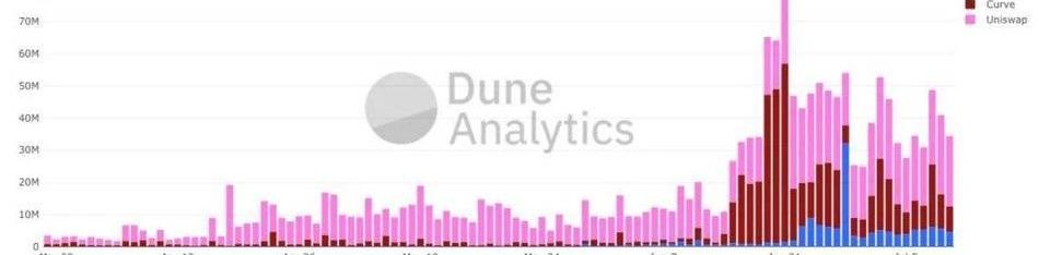 编者按:本文来自链闻ChainNews,撰文:HaseebQureshi,DragonflyCapital管理合伙人,编译:PerryWang,星球日报经授权发布。想象一下,有个大学时的朋友联络你说:「嘿,我有个商业设想。我想开发一个做市机器人。不管谁来询价,我随时都能报出一个价格,我的定价算法会用x*y=k。差不多就这些。想投资吗?」你会躲得远远的。其实,你朋友刚才描述的就是Uniswap。Uniswap也许是世界上最原始的链上做市商运作。莫名其妙的,它的交易量过去几个月出现爆发式增长,凭交易量已成为世界最大的去中心化交易所。如果你并未密切关注去中心化金融去年发生的事情,你也许会问,到底发生了什么?