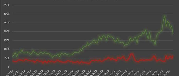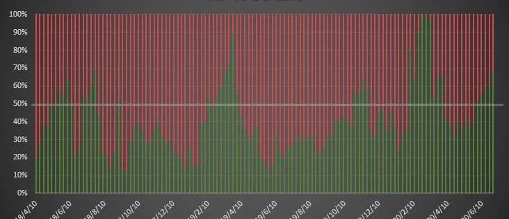 分项数据上来看,规模较大的经纪商持仓多头头寸自642张下降至362张,该数值创出近六周新低,空头头寸自297张同步锐减至80张,数值同样创出5月5日当周极端0值以来新低。从过去几个月调仓的经验来看,这类账户的空头头寸往往会在每个自然月的最后一周大幅下降,而多头头寸数量一直保持在一个相对稳定的水平之上,这又从一个新的角度验证了大型机构中长期的持续偏多态度,即使是在最新一期周报中多头头寸明显下降的情况下,多空持仓比数值依然明显向多方倾斜。